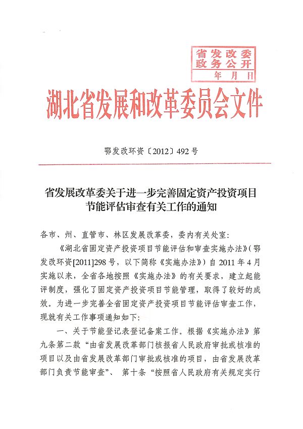 省发展改革委关于进一步完善固定资产投资项目节能评估审查有关工作的通知